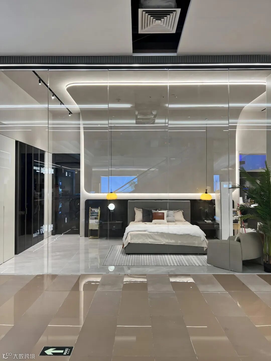 在旗舰店,玻璃橱窗里,引入眼帘的是:瓦尔登湖III系列的卧室。