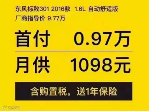 以东风标致301自动舒适版为例: