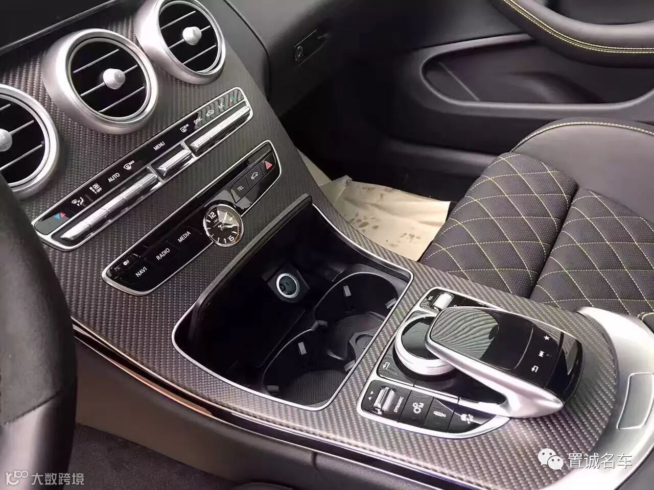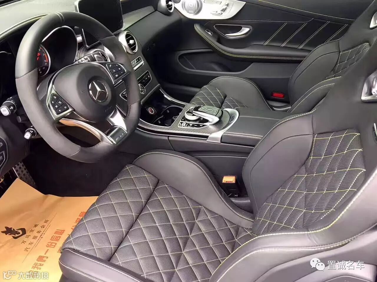 梅赛德斯-AMG C 63轿跑车限量特别版的内饰延续了地道的赛车设计。AMG高性能运动座椅采用NAPPA黑色真皮包覆,而独特的菱形格图案则由对比鲜明的黄色缝线勾勒。此外,更加锐利的座椅轮廓强化了侧面支撑,尤其在汽车高速过弯时。黄色缝线还出现在车门中央饰板、扶手、方向盘以及腰线中。其它黄色亮点美化了仪表盘、AMG特有的万国钟表(IWC)模拟时钟和脚垫。AMG高性能方向盘采用DINAMICA微纤维材质,并带有AMG标识,在12点位置上还有黑色标记。