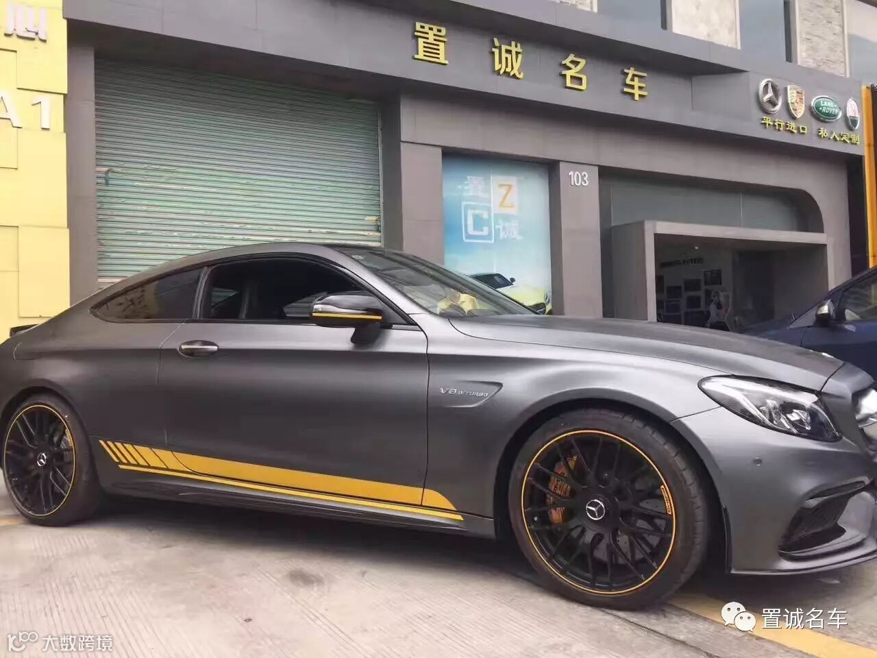 梅赛德斯-AMG C 63轿跑车限量特别版是一款基于AMG C 63 S轿跑车打造的特别版车型。外观上采用专属的designo月光石哑光灰色车漆与明黄色涂装饰条搭配。