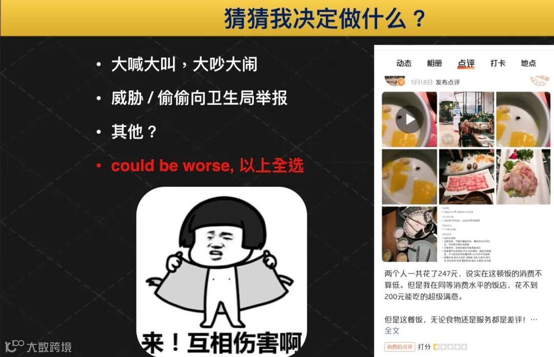 奈何我实在不愿意在公共场合大喊大叫,索性去大众点评给你差评好了。