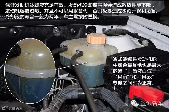 1、及时更换或添加防冻液。冬天户外气温很低,车辆想正常运转,必须有足够的防冻液才行,否则水箱被冻住,无法正常循环,车辆就会出故障。防冻液要在MAX和MIX之间才行,少了要及时补充上。