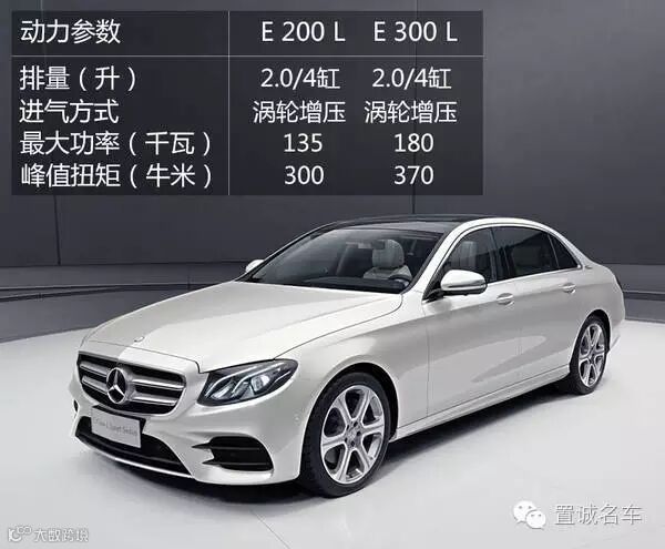 先期上市的全新长轴距E级车搭载2.0升直列四缸涡轮增压发动机,与之匹配的是梅赛德斯-奔驰自主研发的9速自动变速箱(9G-TRONIC),能提供更好的燃油经济性。其中E 200 L车型最大功率为135千瓦、峰值扭矩达到300牛米;E 300 L车型则可以实现最大功率180千瓦、峰值扭矩370牛米的动力输出。