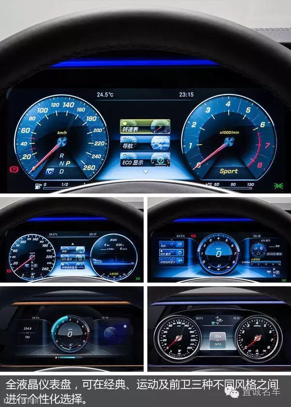 全液晶仪表和显示屏的使用的确是发展趋势,它要大、清晰、信息丰富,而且更重要的是使用方便。就E级而言,看似贯通整个中控台的仪表盘和液晶显示屏其实为两块,尺寸均为12.3英寸(31.2 厘米),分辨率也均高达1920×720,接近HD了。