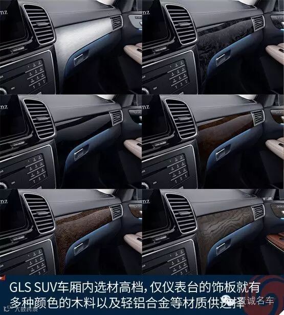 内饰的选材和工艺上了一个台阶,或许还及不上S级那样巴洛克式的古典奢华,但绝对一扫以往奔驰北美工厂过分豪放的牛仔气息。GLS SUV的内饰不仅装配和手感更加细腻了,在选材和配饰方面也颇下了一番苦心,仅车厢内的饰板就有胡桃木、黑色钢琴漆、棕色桉木、带纵纹的轻质铝饰板和棕色岑木等多种选择,此外还有数量繁多的真皮颜色供选择。