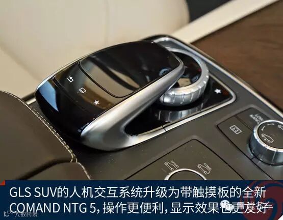 8英寸高分辨率彩色显示屏和新增的带触摸板的全新COMAND NTG 5也打包出现在奔驰GLS SUV上,无论是操作体验还是现实效果都远在老款GL级之上。悬浮式的屏幕比镶嵌在仪表台上的安装方式表达出更多的先进科技氛围,不过在这样一款宽阔庞大的汽车上,8英寸的屏幕依然显得有点“袖珍”,而其粗壮的屏幕边框也浪费了不少可用面积。或许我们只能期待到下一次大换代的时候,奔驰能带给我们如同S级或新一代E级车那样惊艳的全液晶仪表盘了。
