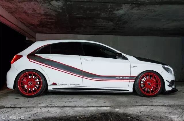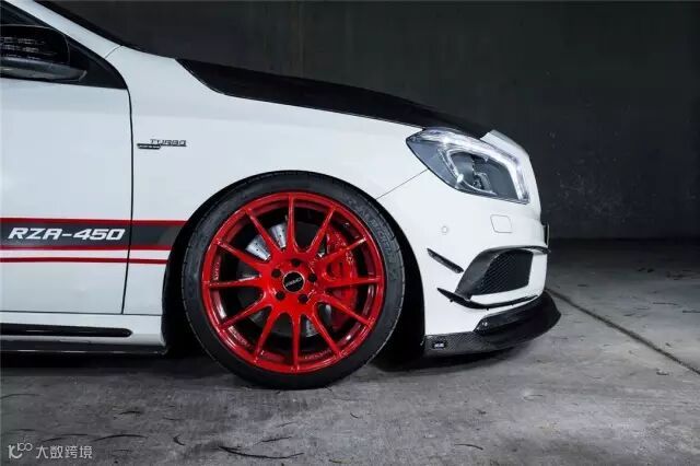 而眼前这辆由改装厂商Mulgari针对A45 AMG研发的名为"RAZ-450"的套件,采用鲜明的黑白涂装,这奔驰旗下性能部门Black Series所常用的颜色非常类似,搭配红色轮毂后整体运动感十足!