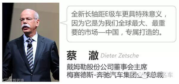 对于第十代奔驰E级车的国产长轴距车型,戴姆勒股份公司董事会主席、梅赛德斯-奔驰汽车集团全球总裁蔡澈博士表示:“一直以来,E级车都是梅赛德斯-奔驰品牌的核心产品。”他谈到,全新长轴距E级车更具特殊意义的是,它为我们全球最大、最重要的市场——中国,专属打造。
