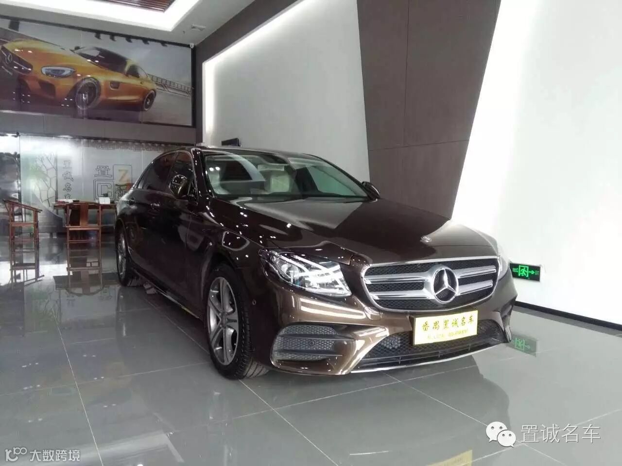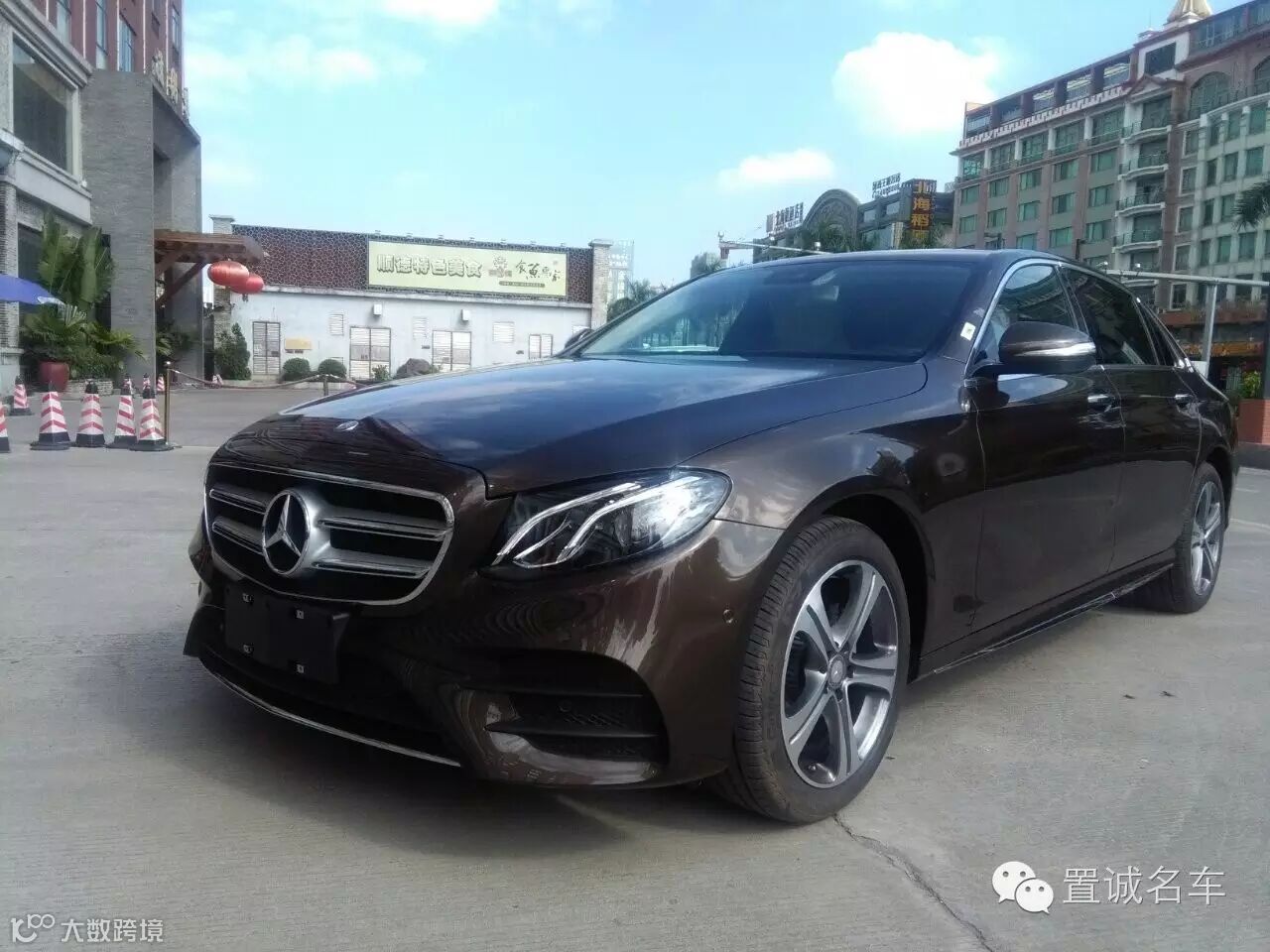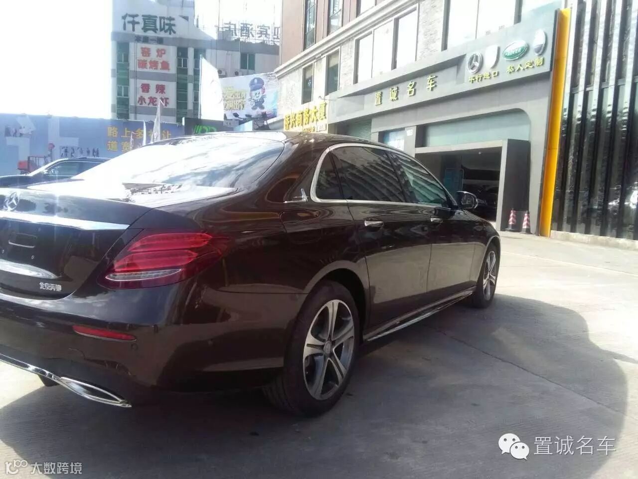 E200L运动轿车,水晶棕色刚刚到店,室外阳光下效果。