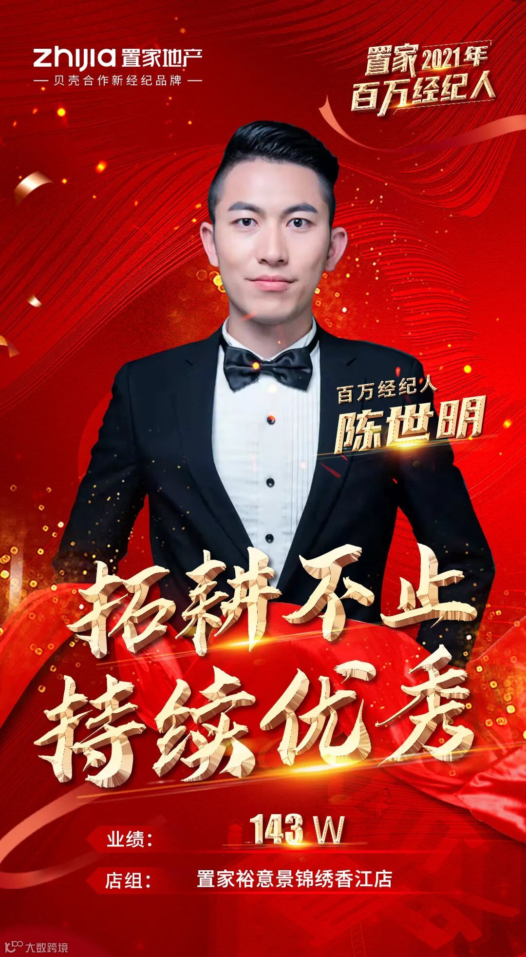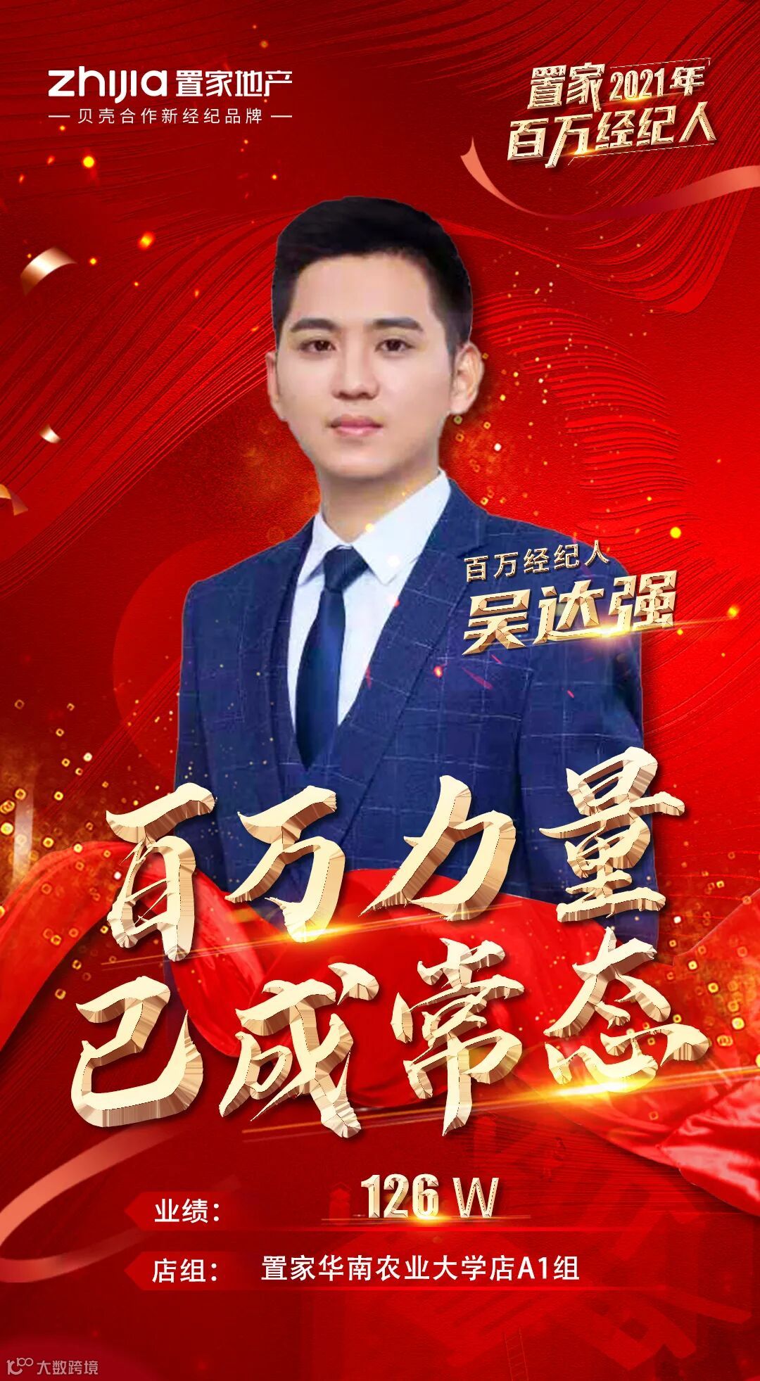 他,一踏出校园就来到置家,在这里成长蜕变,把平凡改写成光环,用百万铸就了榜样的力量!他,连续两年蝉联百万经纪人,百万是他的习惯,优秀更是他的代名词!