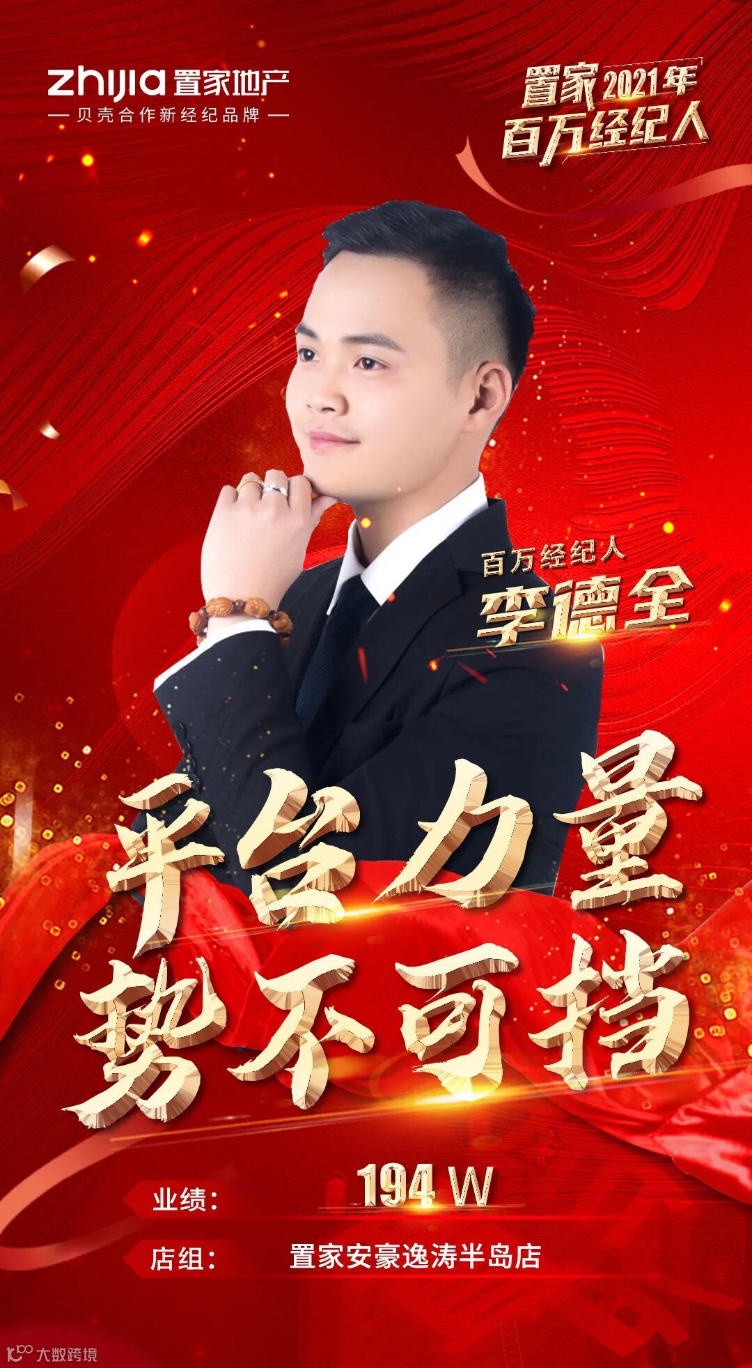 凝聚平台之力,成就向上之势。他用实力逆势崛起,用坚持突出重围,不仅创造了属于置家安豪逸涛半岛店的百万之路,也成就了自己不凡的巅峰!
