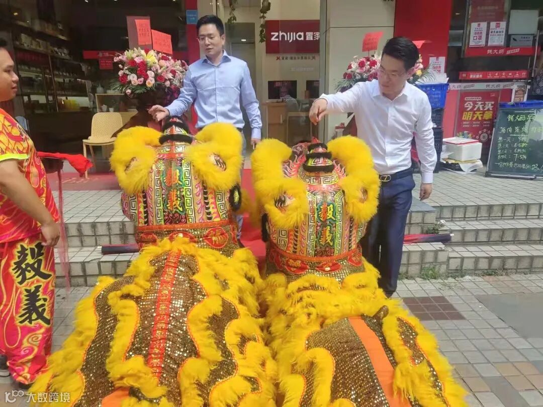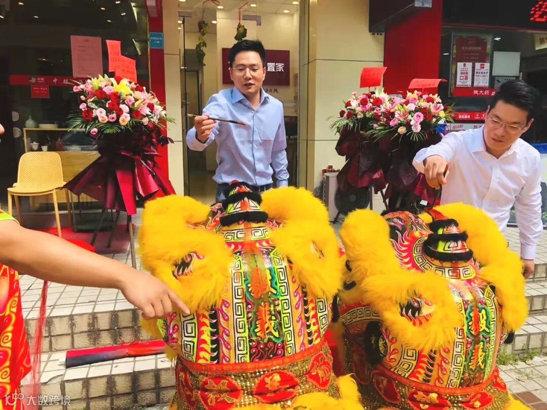 在三笔点睛之后,迎来充满活力和激情的舞狮表演。一阵阵叫好、一声声祝福,都见证着店东张方朋所带领的团队迈上新征程,相信迈向新经纪时代的置家华景路店也将越来越强。