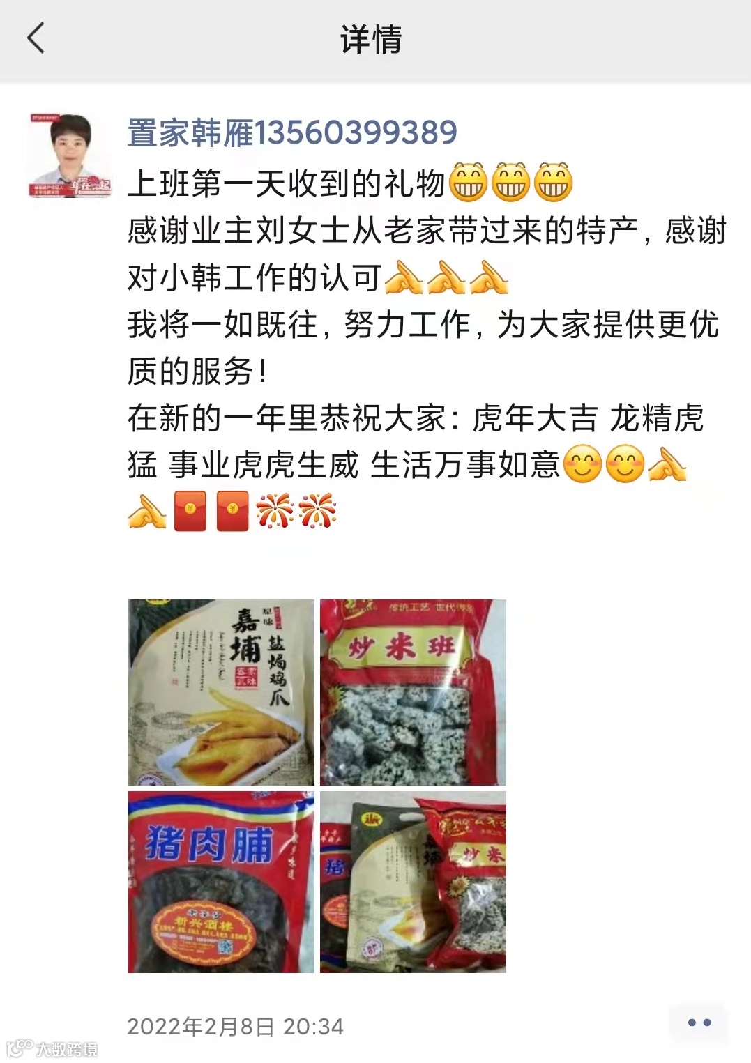 “成交不仅仅是收佣的那一刻,还包括过户,交房等等后续工作,只有把每步细节工作做好了,才能收获客户的认可并转介绍,所以我转介绍的客户也蛮多的。“韩雁坦言道。