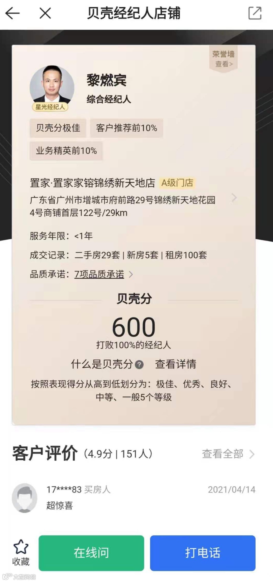 也涌现很多榜样力量,比如贝壳分标杆黎燃宾,高达600分,超过了平台99.9%的经纪人,其他门店的经纪人也会来取经,其实他接触线上才半年。