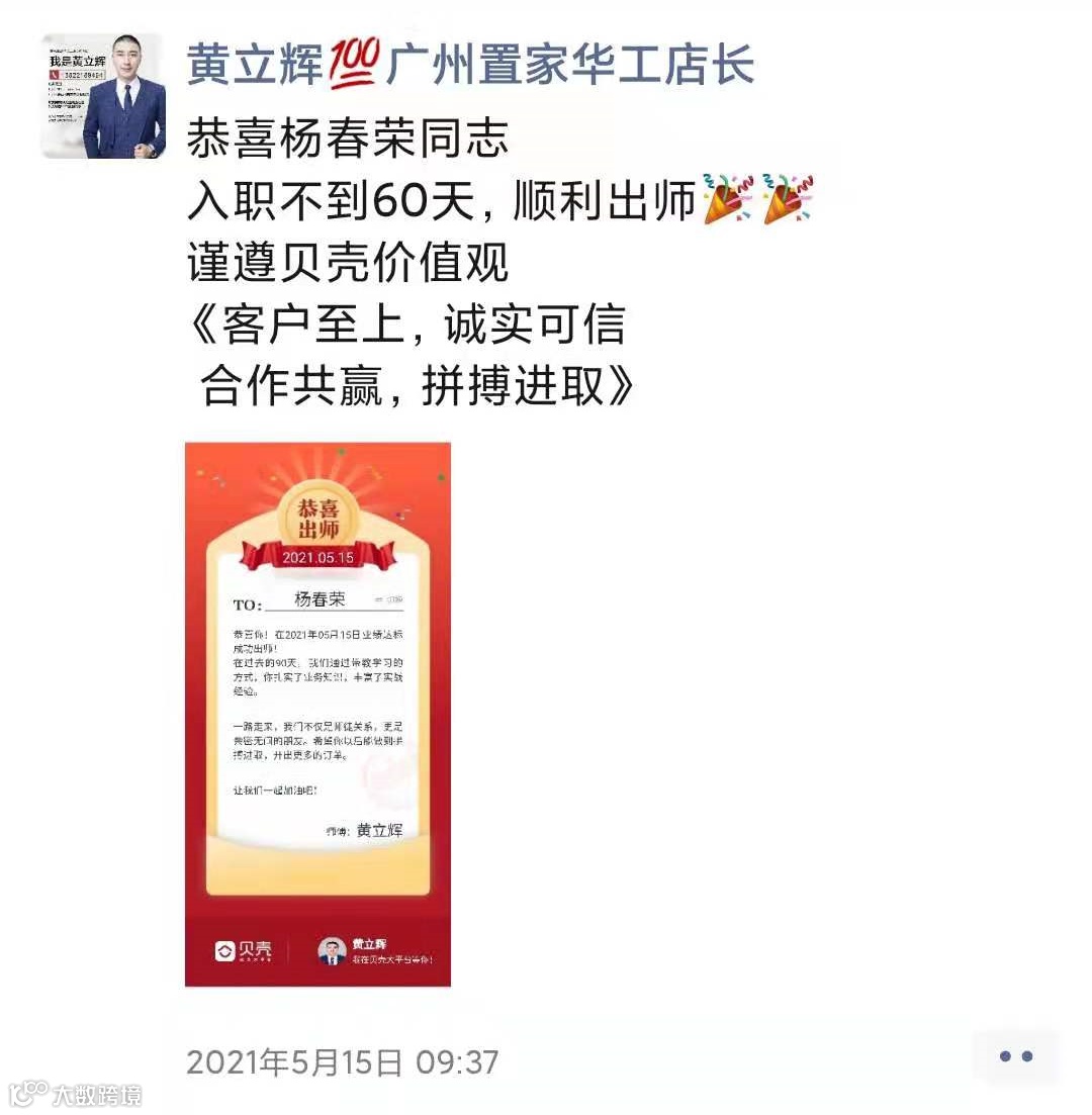 未来,杨春荣也干劲十足:“三人行,必有我师焉,接下来会继续向身边的同事学习交流,向其他行业的人学习,更好地服务客户。贝壳的愿景是成为服务3亿家庭的品质居住服务平台,我的愿景是服务30个,300个,3000个家庭…”