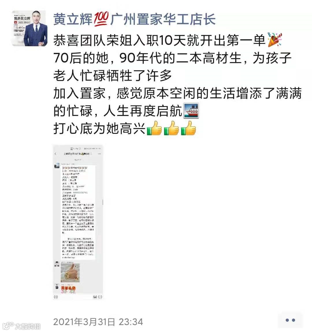 “我们置家华工店是百万大店,这是我自豪的地方,骆总年轻有为,爱拼会赢,带领小伙伴们的取得一次又一次的辉煌业绩。相比,我的小小租单是大海里的一粒水滴。“