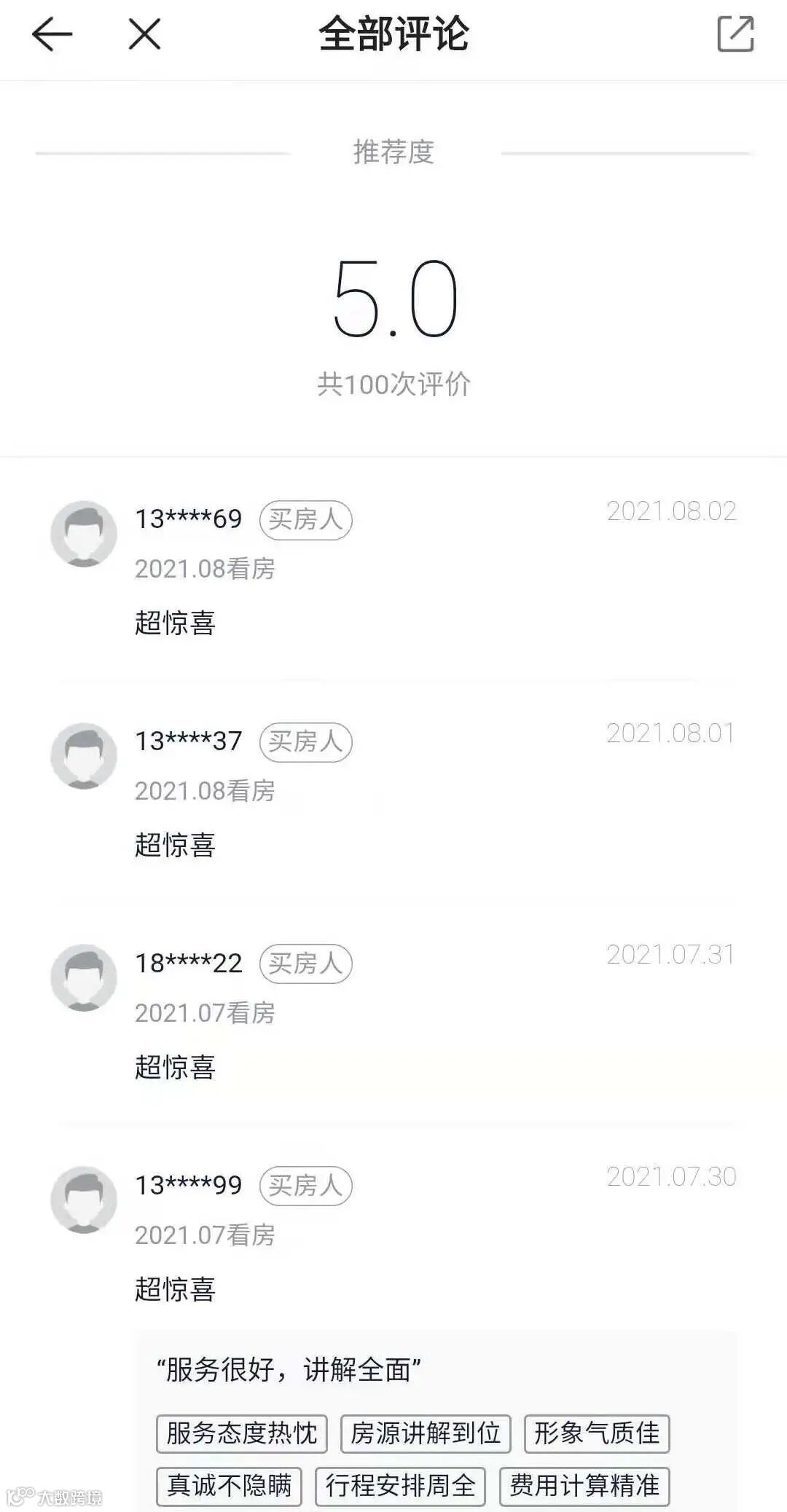 正是因为洪妙娜在业务上的热情专业、贴心服务、将心比心,赢得了众多老客户的信赖和支持。一般带客户看完房,客户也都会主动给她满分评价。