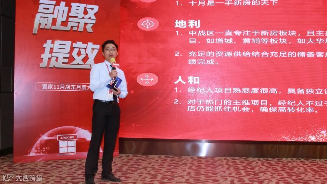 置家集团业务副总裁邹勇坚先生以数据为依据,回顾了10月集团规模以及整体业绩情况,并对11月的业绩目标作出了指导。强调人才体制推行的重要性,从投资回报率、成长空间、愉悦因素等三个方面来解释如何用好人才。