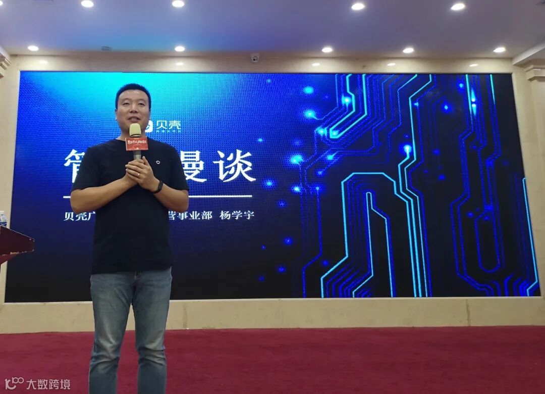 会议初始,贝壳广州运营事业部总经理杨学宇主要围绕两大方面:贝壳平台逻辑及门店经营管理的重心进行深度分享,指出在新经纪时代,合作提效大于技能提效,经纪人协作是高维文明。
