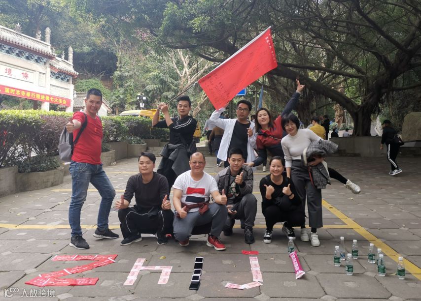 在能仁寺打卡环节中,利用一切现有的道具摆出“zhijia”的字样并团队合影。其实干业绩亦是如此,利用现有资源,一起团队合作,一起努力爆单!