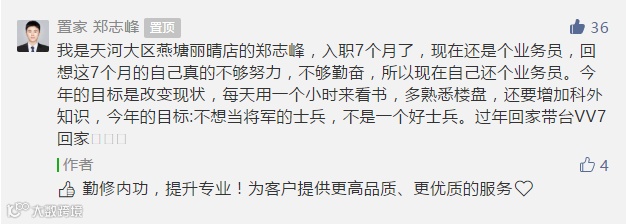 置家北战丽晴店郑志峰:入职7个月,看到前辈事迹现痛下决心改变现状,目标回家过年带台VV7