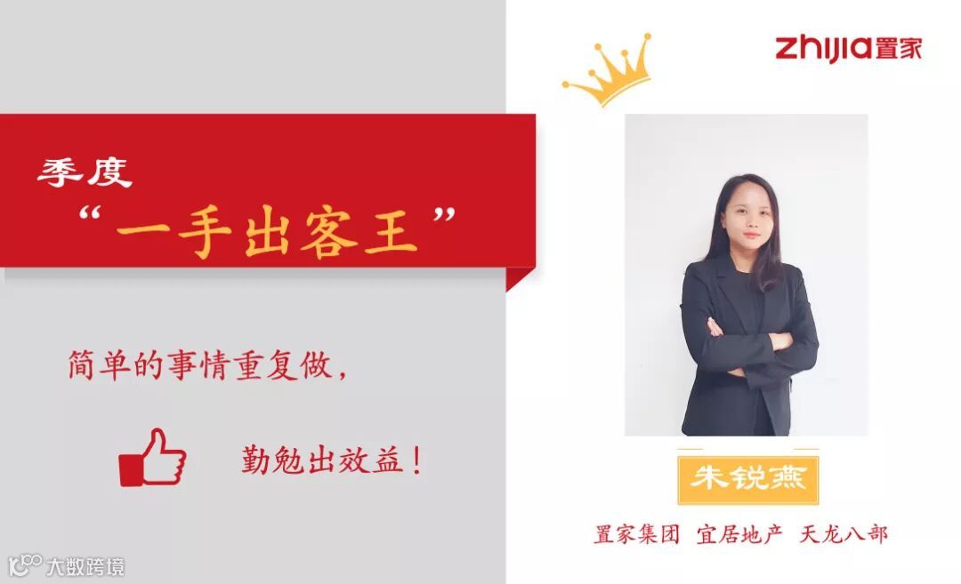 朱锐燕,置家集团2019年第一季度“一手出客王”斩获者,创造了吸客131台,实际出客24.6台的优异成绩。这个1999年出生的小姑娘,凭着自己坚韧不拔、坚持不懈的精神品质稳稳地站在了置家一手合伙人的位置上。