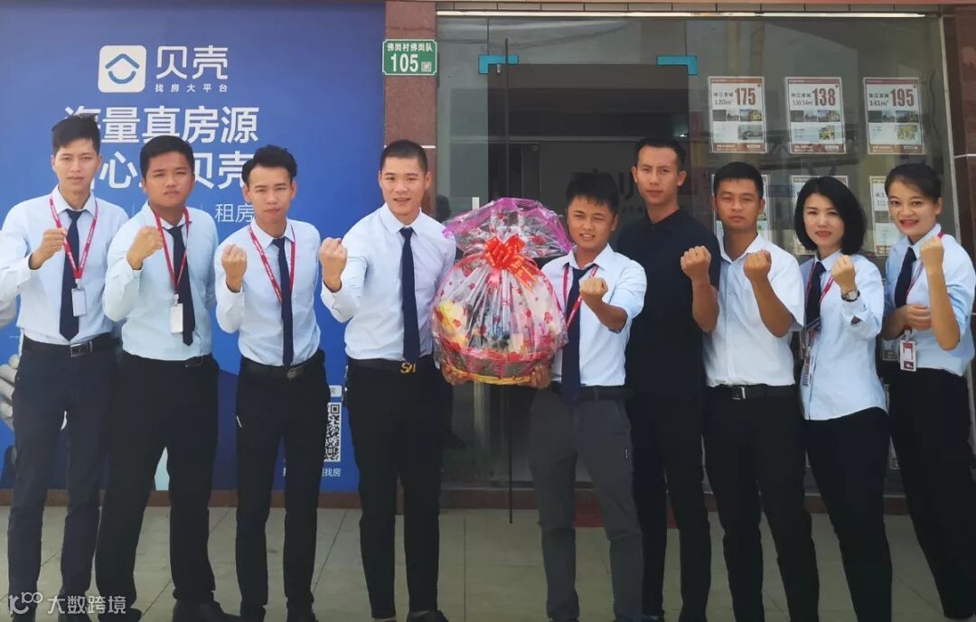 9月12日上午9:00,广州贝壳从化大区CA总监易涌清,置家集团董事徐鑫等一行人走进置家加盟店——一成地产珠江壹城店,共庆祝8月总业绩超70万,创从化大区贝壳系门店总业绩第一。