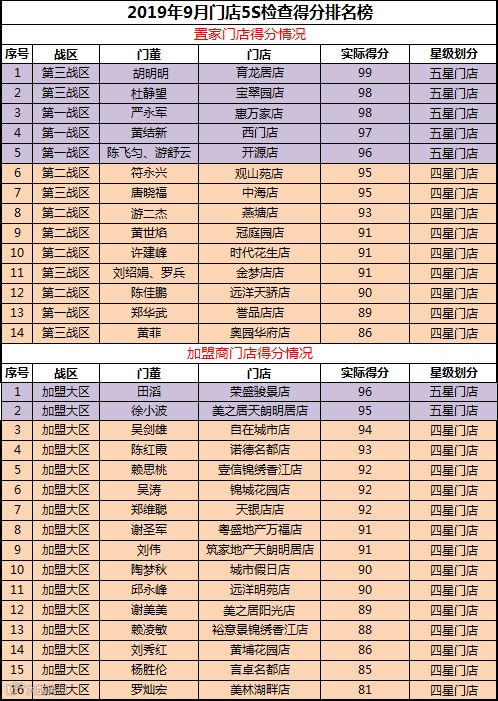 以上便是9月份置家门店5S检查成绩单啦。怎么样?是不是没有对比就没有伤害?