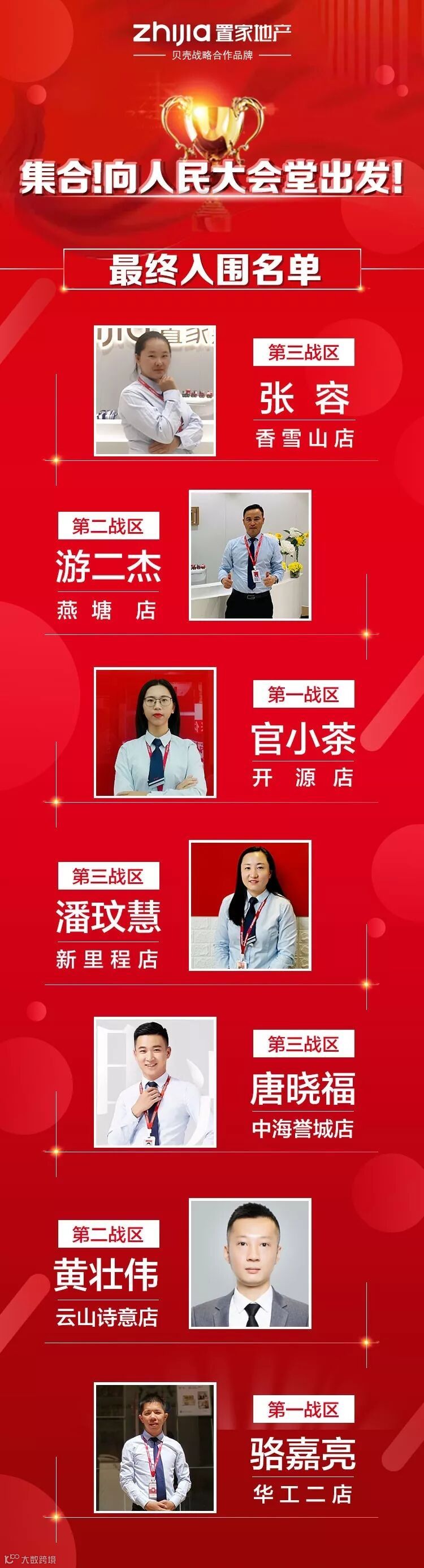 置家直营门店也不甘落后,第三战区的香雪山店张容、新里程店潘玟慧、中海誉城店唐晓福,第二战区的燕塘店游二杰、云山诗意店黄壮伟,第一战区的开源店官小茶、华工二店骆嘉亮也都成功入围人民大会堂国宴。