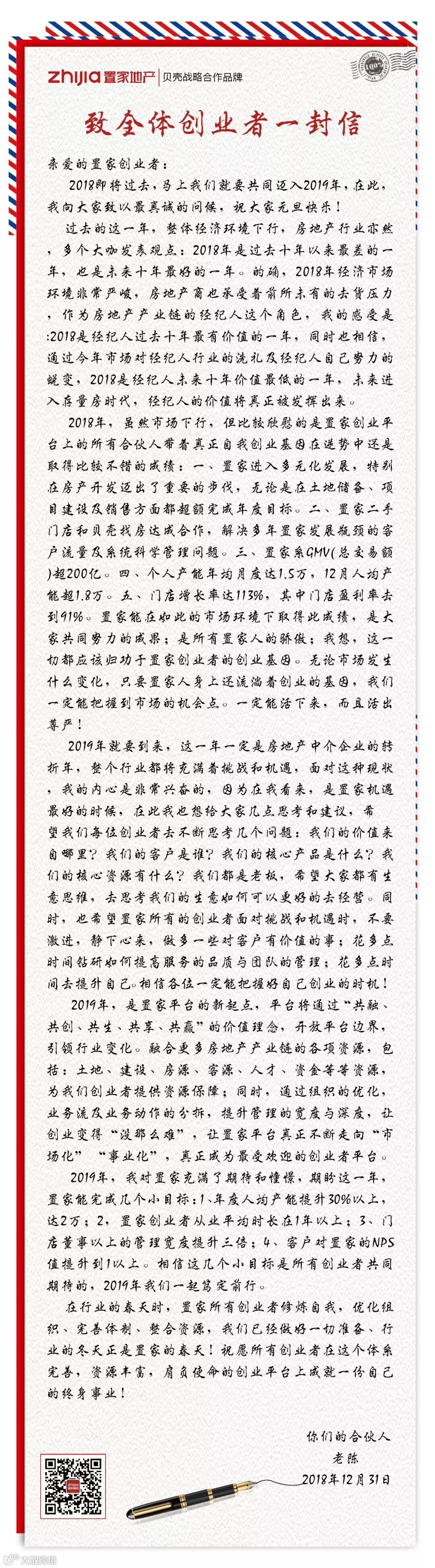 导读:新年伊始,仅以此信送给每一位置家合伙人。因为你们真的很优秀!
