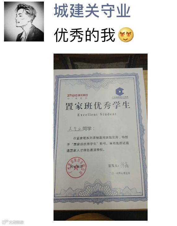 “置家班”优秀学生颁发证书