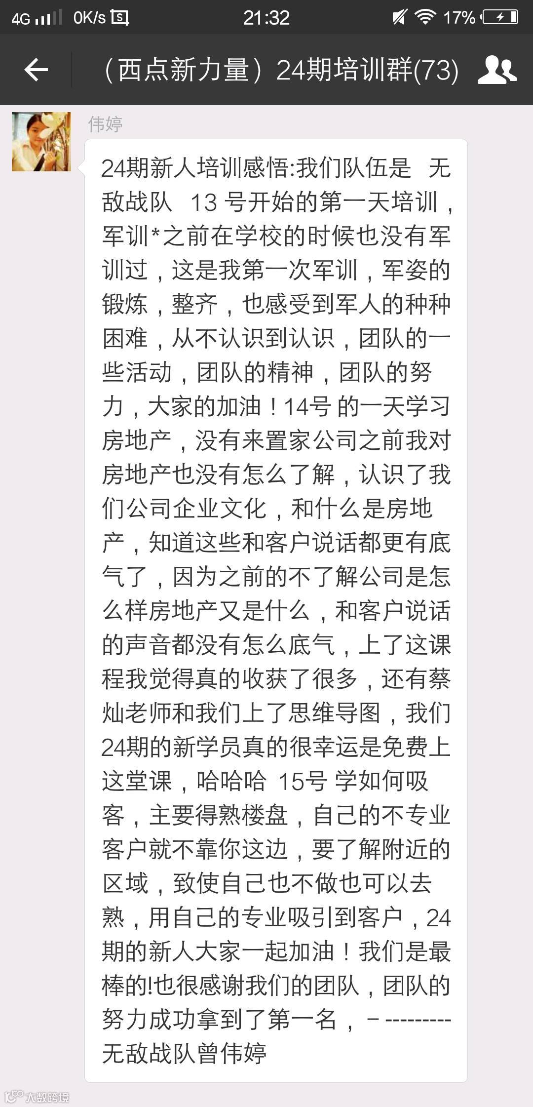 目前,置家讲师团人数高达40多人,2017年一共开展了24场新职培训,18场精英特训营,13场西点管理铁军,8场公开课,17场学霸考,2场西点高端定制,总计输送人次达7550人左右,已经成为名副其实的置家人才培养基地。我们专注每一场培训,重视每一堂培训课后反馈,前线的需求就是我们努力的方向,经纪人的肯定是我们前进的最大动力,我们力求把企业内训做到极致,我们致力打造经纪人最受欢迎的学习平台!