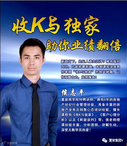 侯志平老师的分享主要为阻碍收K与独家的原因、多种破解客户异议的方法、及收K与独家的标准流程等。特别强调在收K与独家的时候,一定要细心发现问题,认真思考问题的所在点并不断寻求解决问题的方法!