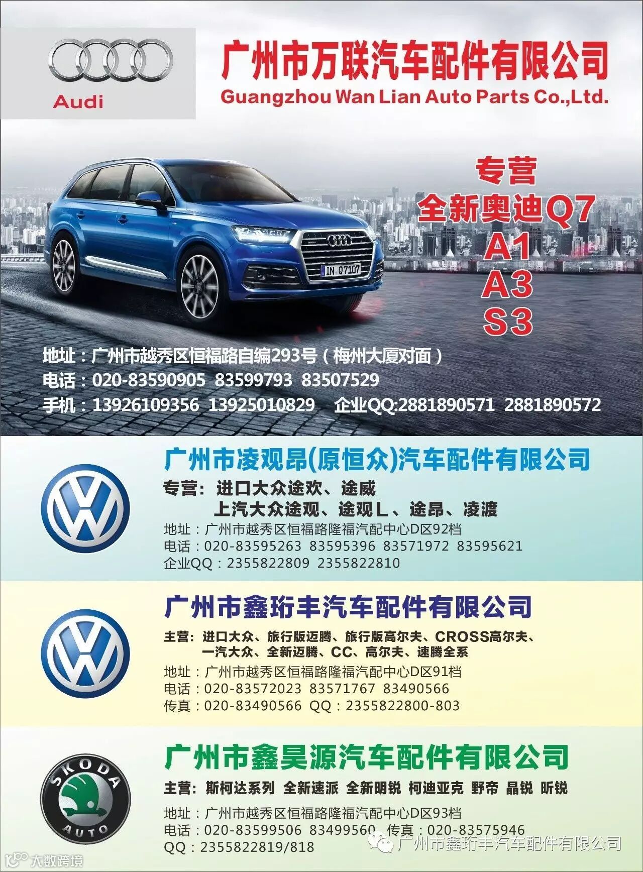 恒丰公司主营:一汽大众、上海大众、奥迪和斯柯达原装高档全车配件的销售与批发,常年有大量库存可供同行调货,有需要的客户欢迎询价!