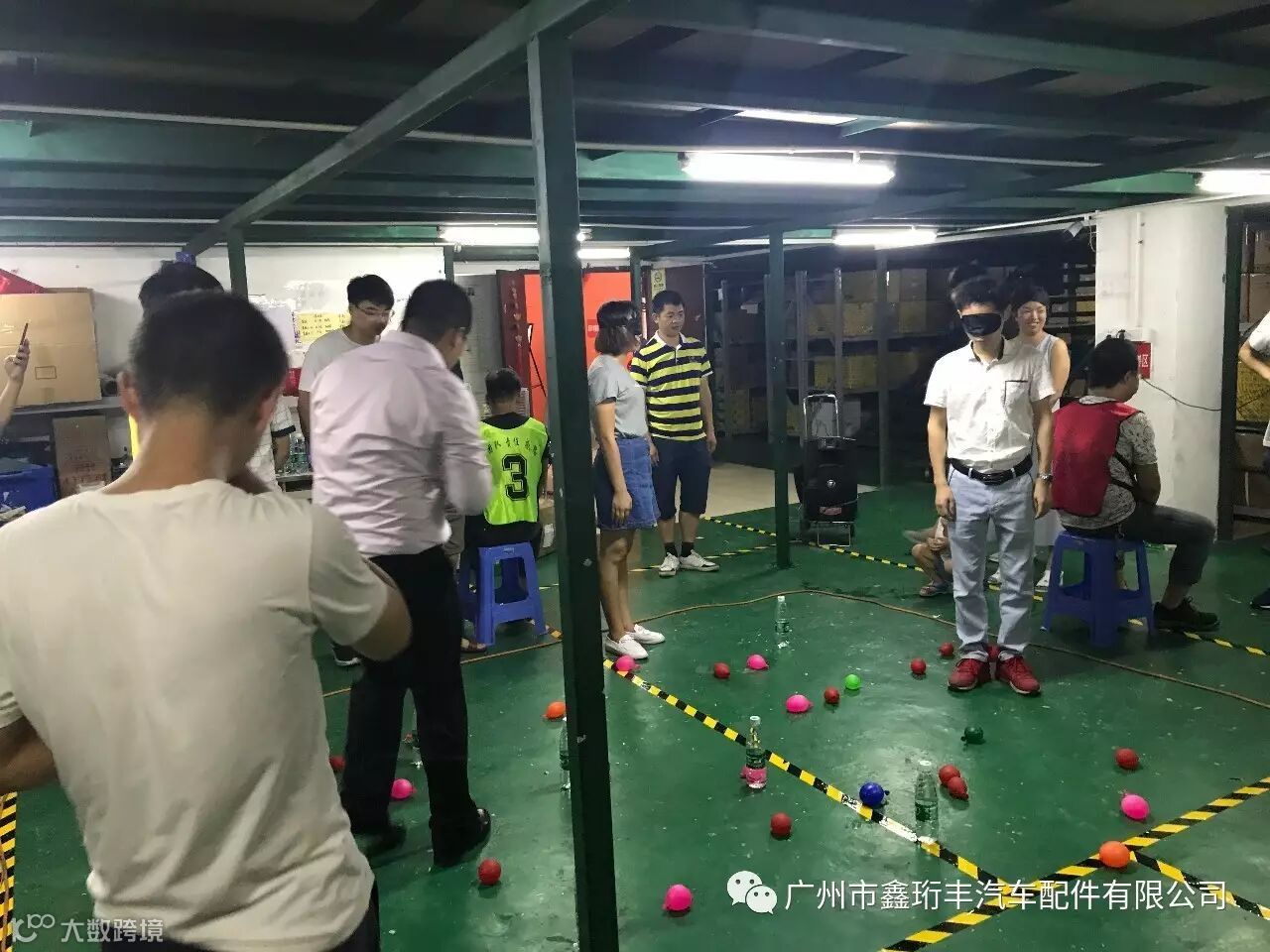 分成两个团队,每个团队有三种角色,指挥官一人,军官一人,剩下的学员全部是士兵,指挥官只能做动作不能讲话,军官可以讲话,士兵全部蒙上眼睛,看不到,也不能讲话。圆圈内放有地雷和炸弹(用气球里装水代替地雷,水瓶代替炸弹),指挥官和军官在圈外,士兵在圈内,双方在军官的指挥下,指挥各队的士兵去拿炸弹攻击对方,看最后那个队幸存者多,就为胜方。