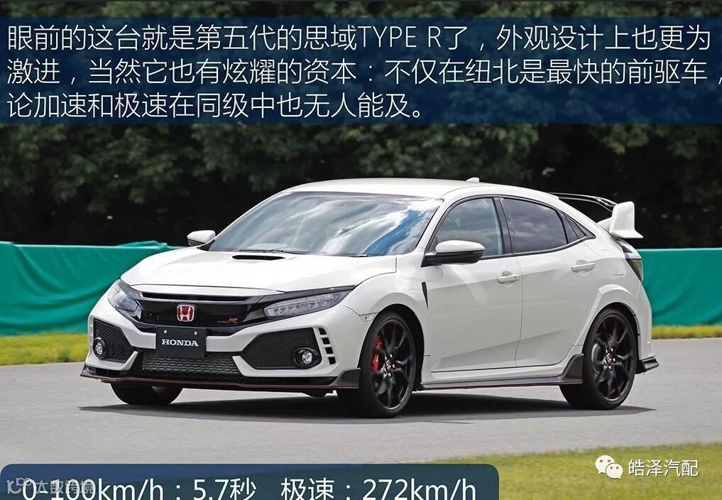 作为一款高性能车,全新思域TYPE R的性能表现自然是读者关注的重点。此前,官方已经宣布全新思域TYPE R以7分43秒80的成绩拿下了德国纽伯格林北环赛道的量产前驱车型圈速记录,而近期官方则公布了其0-100km/h加速成绩为5.7秒,这一数字与上一代思域TYPE R车型持平。另外,官方还公布了其最高车速为272km/h。