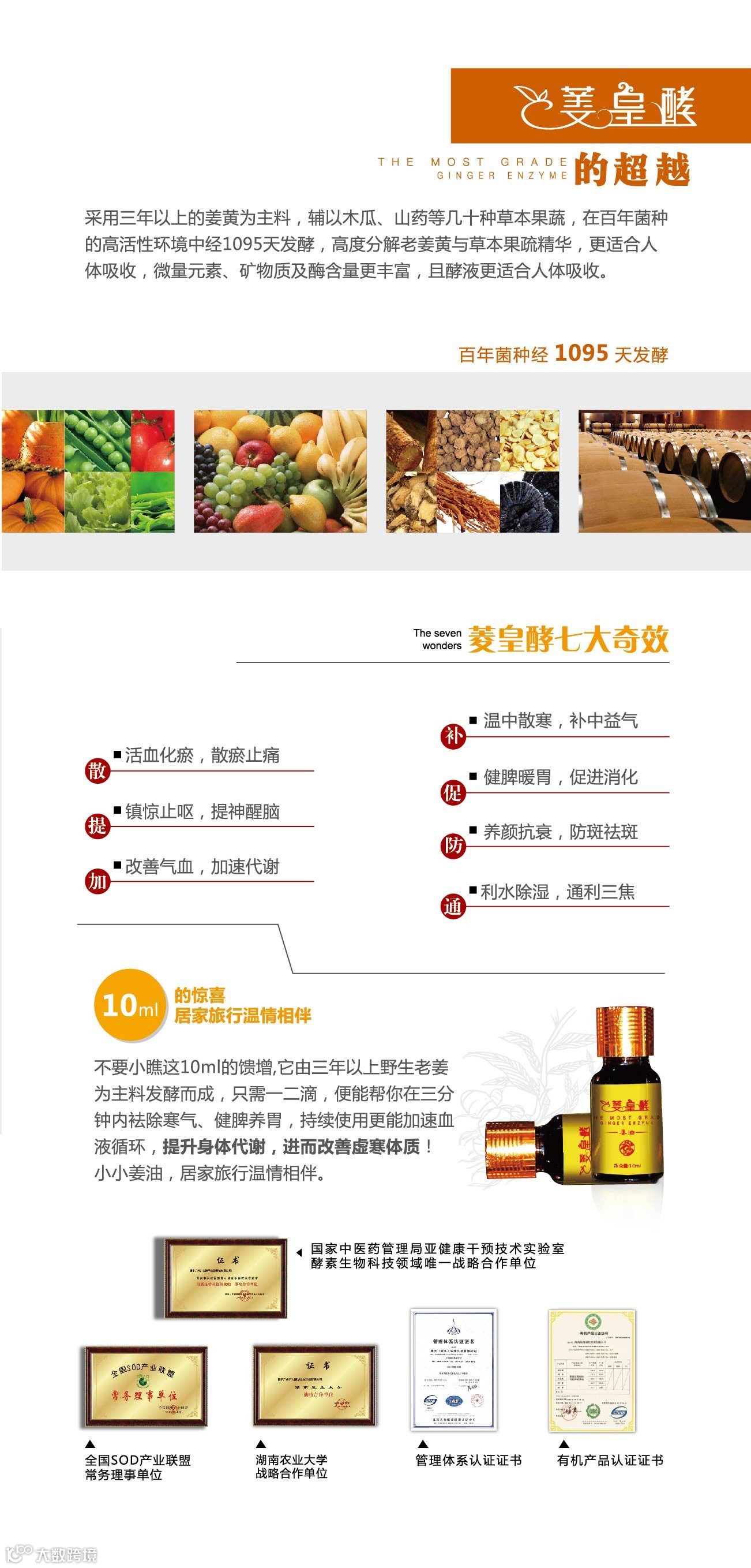 温馨提示:饮用葁皇酵期间可配合使用酵素姜油涂抹于腰腹部或头部等不适部位,加强调理效果。
