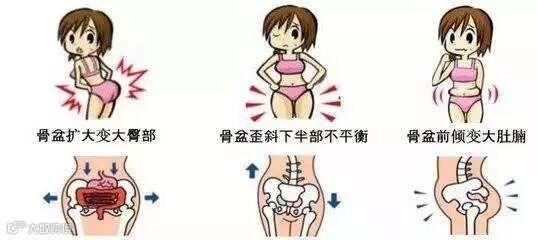 骨盆打开的症状:体型走样、腰痛肩酸、小便失禁、内脏子宫下垂等。