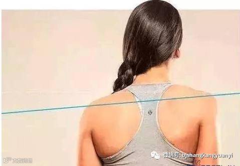 取站立位,放松,两手自然下垂,面对镜子观察自己的左右肩膀高低不同;或者手触诊两侧肩胛骨下角是否在同一条水平线上等。