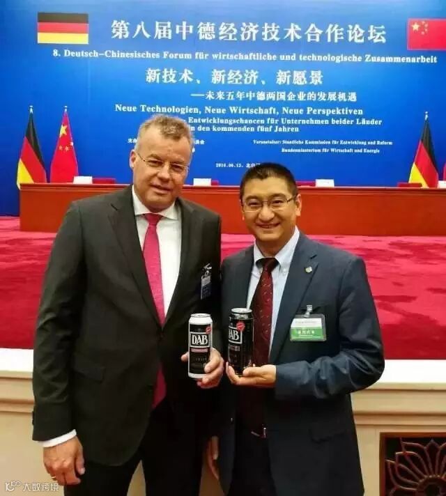 中德两国总理共同见证德国大奔DAB啤酒合作签约。