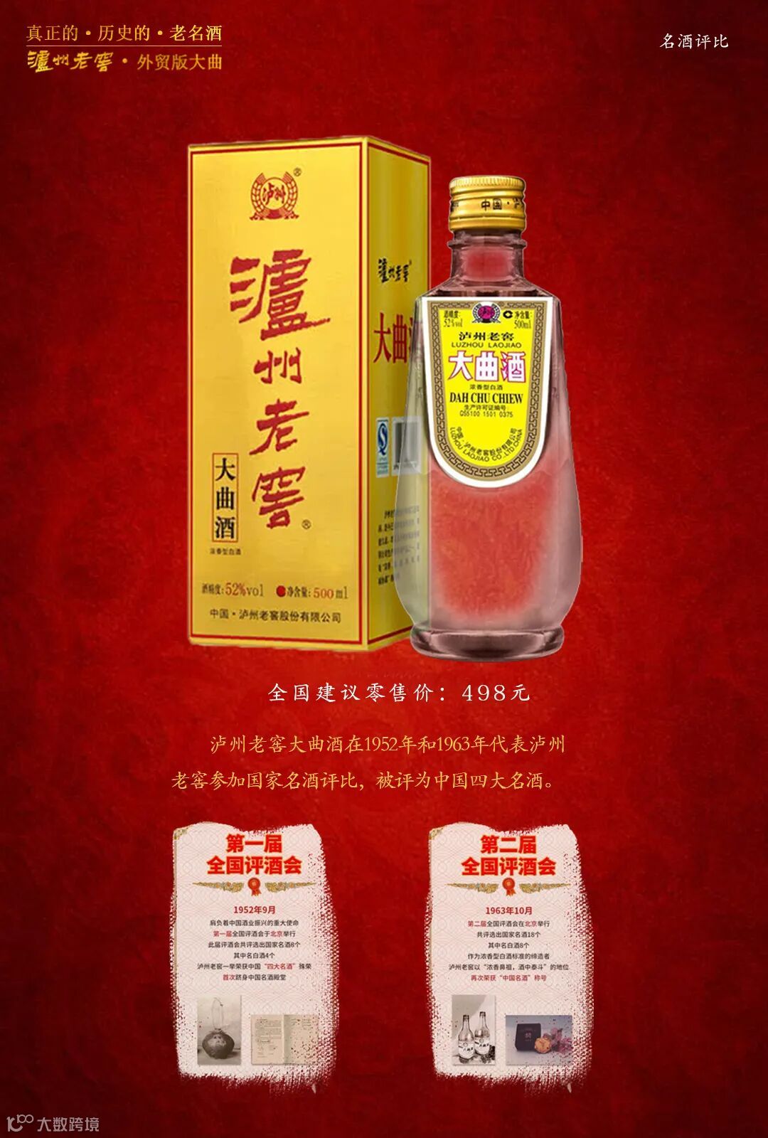 1952年3月,于第一届全国评酒会上首获中国“四大名酒”美誉;