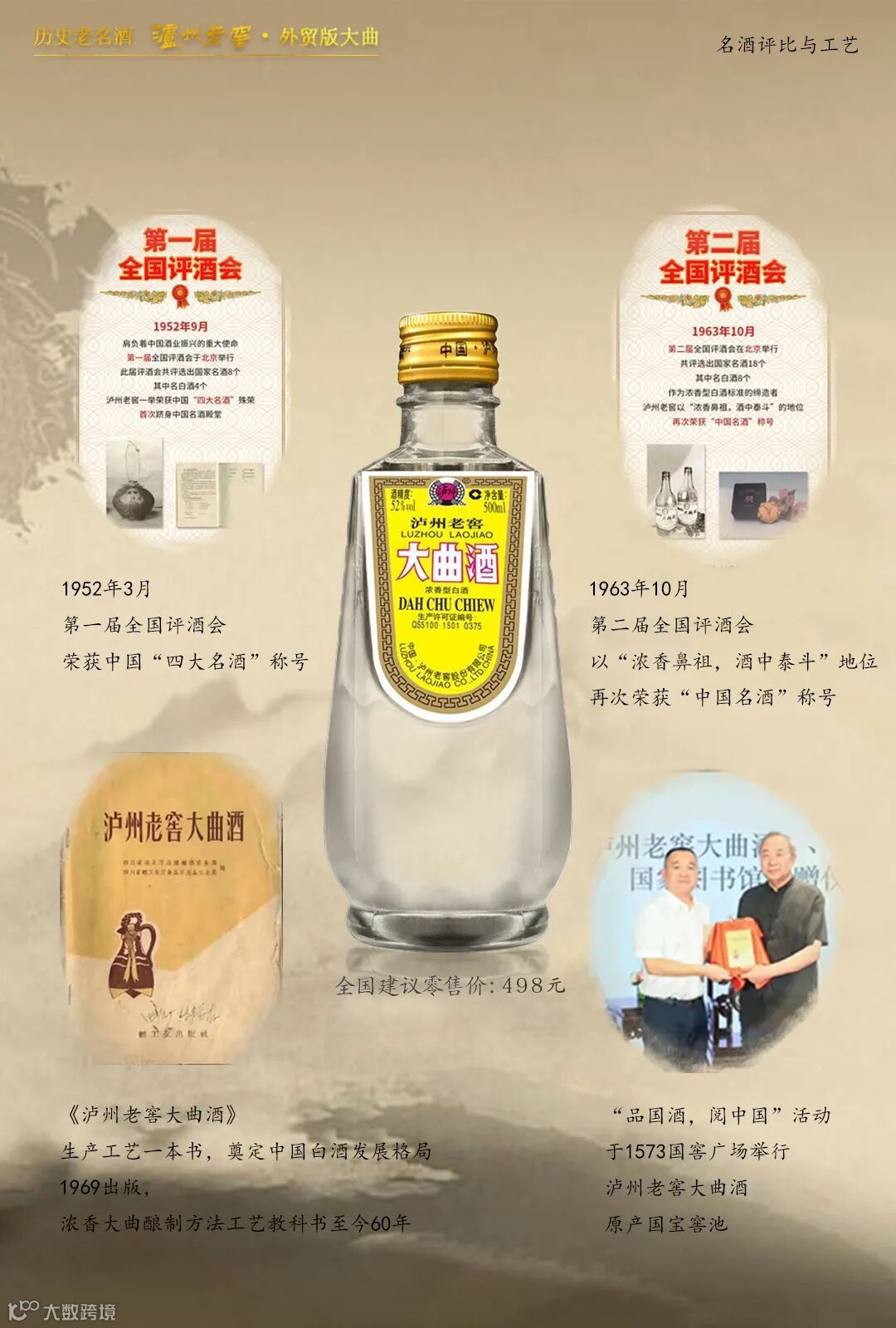 1969年,出版了《泸州老窖大曲酒》生产一书,成为“浓香大曲酿制方法工艺教科书”至今60年,传承了大曲酿制的传统工艺,奠定了中国白酒发展的格局。