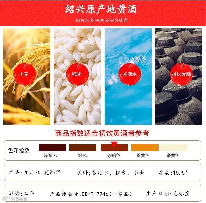 花雕酒是属于发酵酒中的黄酒,中国黄酒中的奇葩。选用上好糯米、优质麦曲,辅以江浙明净澄澈的湖水,用古法酿制,再贮以时日,产生出独特的风味和丰富的营养。据科学鉴定,花雕酒含有对人体有益的多种氨基酸、糖类和维生素等营养成分,被称为“高级液体蛋糕”。