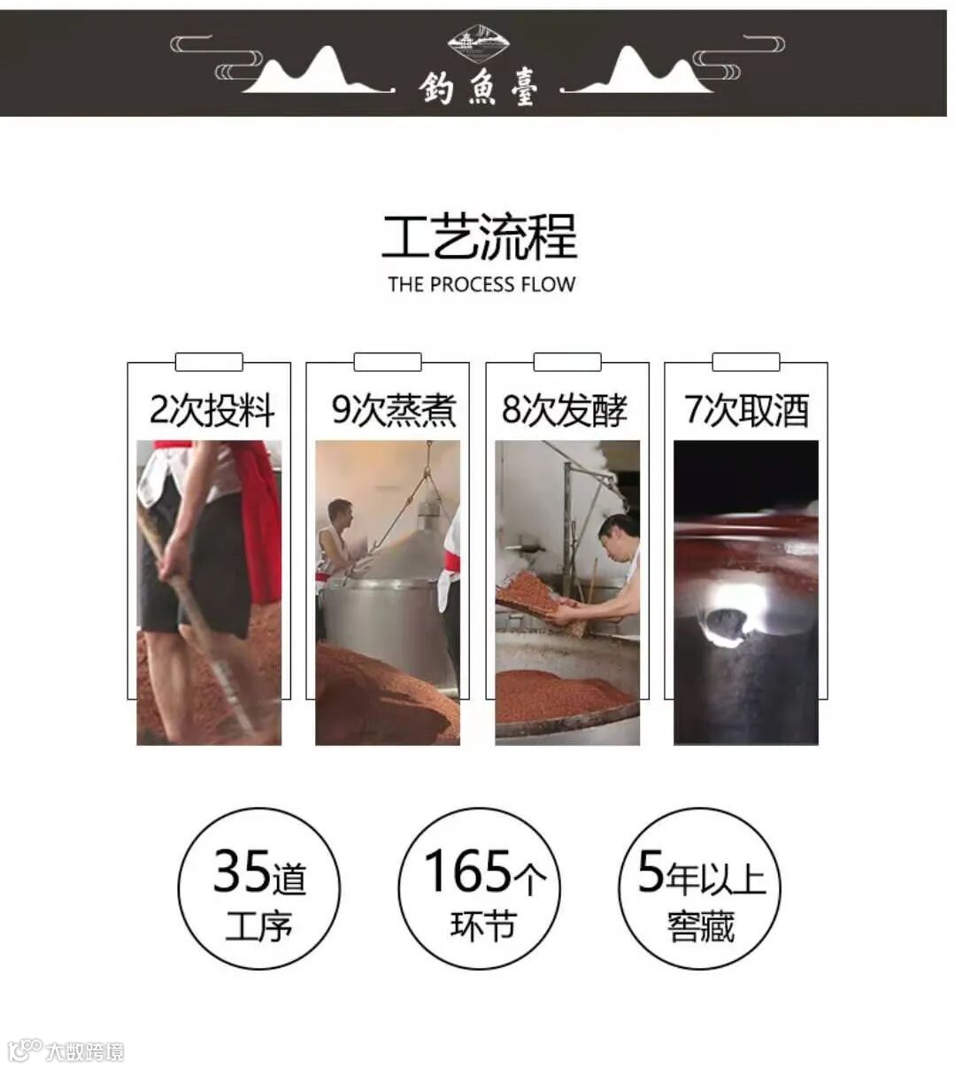 钓鱼台品牌白酒生产酿造周期为一年,采用传统大曲酱香型白酒的“12987”酿造工艺。