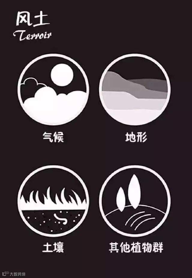 在法国,葡萄种植者常挂嘴边的莫过于terroir这个单词。terroir即风土,是葡萄树生长环境的总和,包括土壤类型、地形、地理位置、光照条件、降水量、昼夜温差和微生物环境等一切影响葡萄酒风格的自然因素。