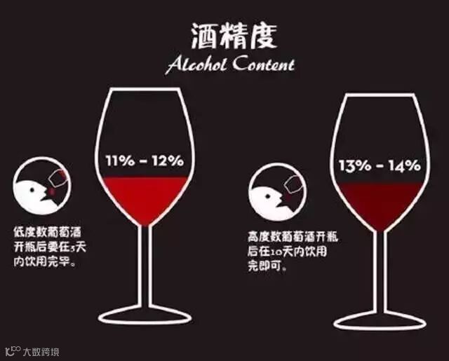一般来说,葡萄酒的酒精度大都在8%-15%之间,它主要由葡萄果实中的含糖量决定的。但是不同酒精度的葡萄酒的饮用时长是不同的。