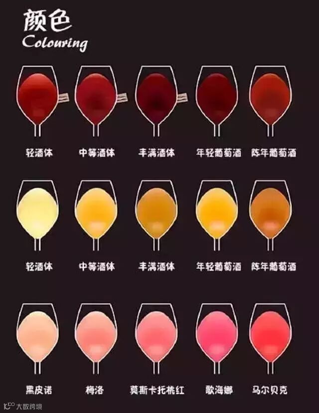 识别葡萄酒的颜色就是品酒中不可或缺的重要一步,因为葡萄酒的颜色不仅包含了酒龄、酿酒葡萄品种以及风味等信息,而且还包含着葡萄酒品质和产地及酿造工艺等知识。