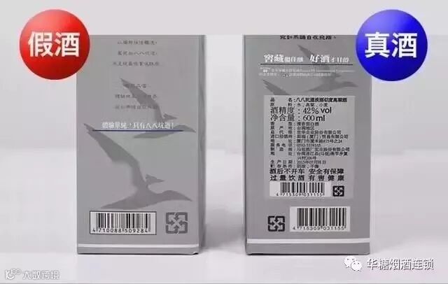 真的八八坑道瓶盖大都使用铝质金属防盗盖,表面光滑不伤手,开启方便,盖上图文清晰整洁,对口严密,倒转无滴漏。而假的则没有专有塑封,表面参差不齐、有瑕疵。
