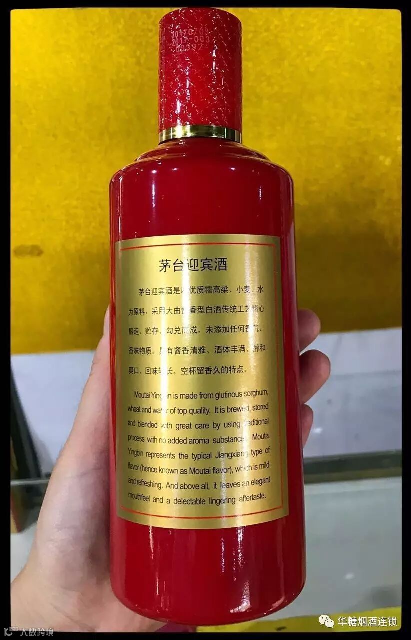 茅台迎宾酒,是茅台旗下自主核心品牌之一。茅台迎宾酒以本地优质高粱、小麦、水为原料,采用独特工艺精心酿制、贮存、勾兑而成。具有酱香明显、幽雅舒适、醇和协调、回味较长、空杯留香的特点。数年来,茅台迎宾酒不断推陈出新,品质不断升级,成为各种喜宴接待迎宾的不二之选。