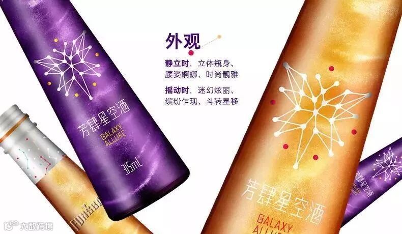 摇动酒瓶能够产生火焰效果,或者如同星空璀璨的模样。